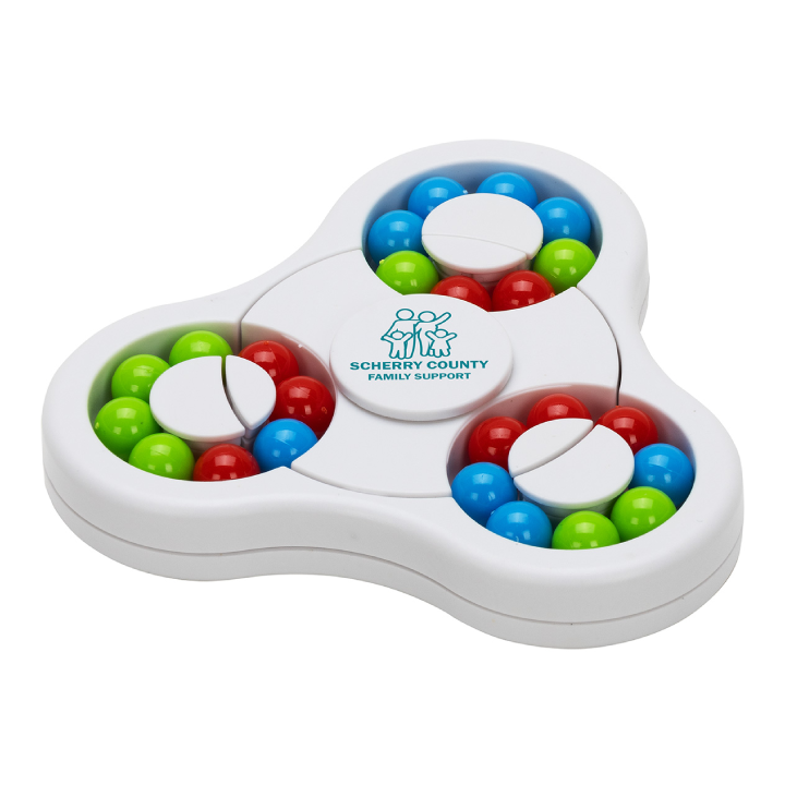 - Combines a colorful ball maze puzzle with a fidget spinner design