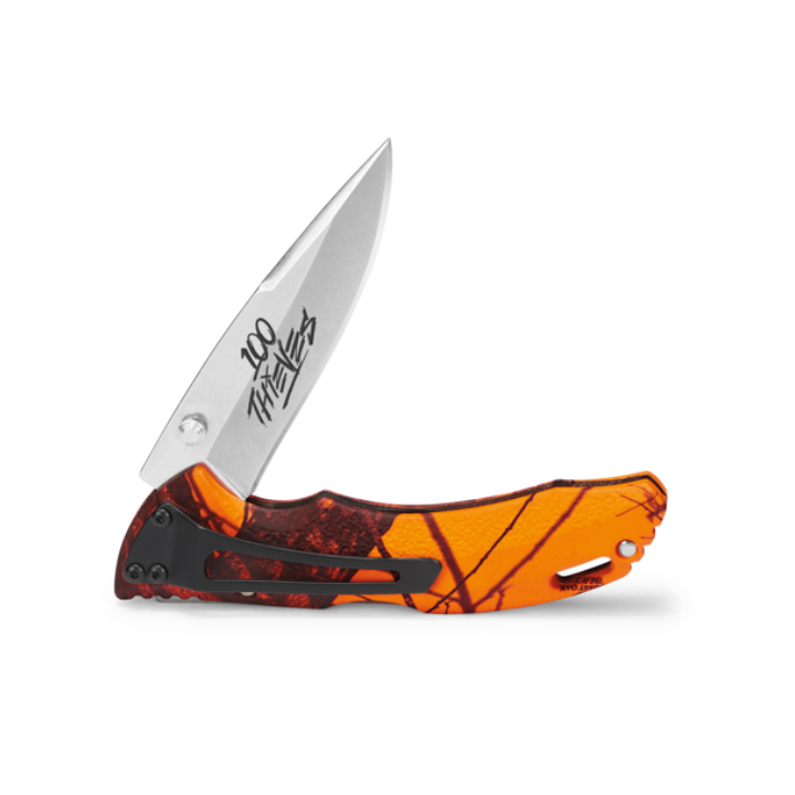 The Buck Bantam BLW Lockback Knife is a versatile and reasonably priced pocket knife. It boasts a medium size, lightweight construction, and sturdy design. Its thermoplastic handle features a unique mossy orange break up pattern.