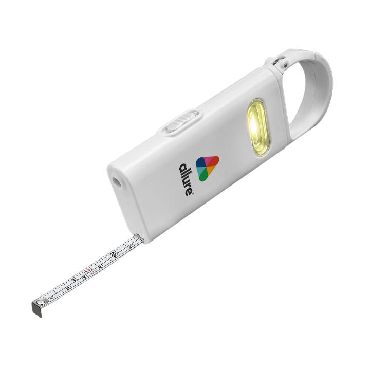 This Carabiner COB Flashlight with Measuring Tape combines bright COB lighting with a handy built‑in tape measure. A compact, clip‑anywhere tool ideal for contractors, real estate, safety programs, and everyday promotions.