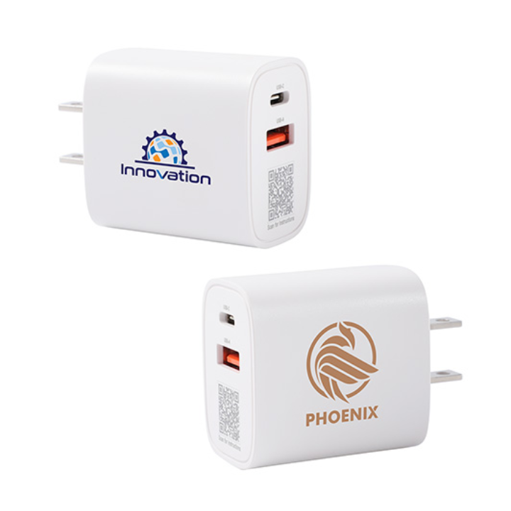 The 20W 2‑Port PD Wall Charger delivers reliable, high‑speed charging in a lightweight, travel‑friendly design. With both USB‑C and USB‑A outputs, it’s ideal for smartphones, tablets, earbuds, and other everyday tech. Add your branding for a practical promotional gift customers will use daily.