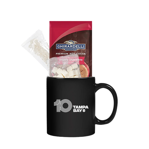 This 11oz classic mug comes with a gift set of hot cocoa that will make a lasting impression