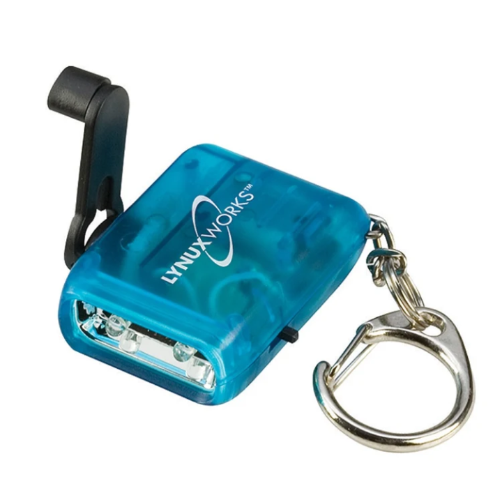 - Our petite translucent flashlight with hand crank and on/off switch shows off what makes it one of our top eco-friendly items by revealing all the secrets of its inner workings.