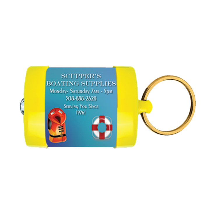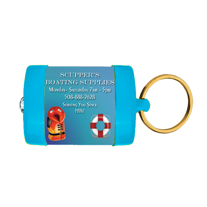 - Squeezable disposable flashlight comes with matching top and bottom caps.