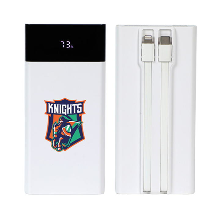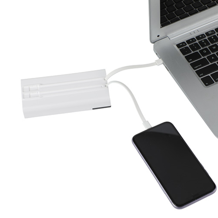 - Built-in USB-C cable and Lightning cable eliminate the need to carry extra cords
