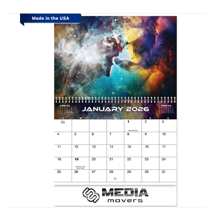 Deluxe Images on our Custom Space Spiral Wall Calendar (2026)