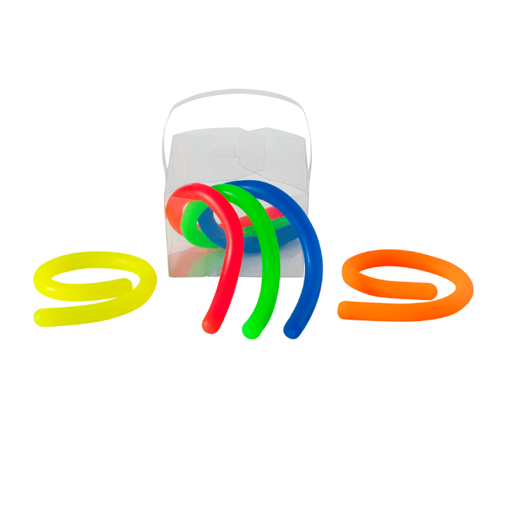 - Take the FUN on the GO with these sensory stretch noodles made of TPR in adorable clear take out container