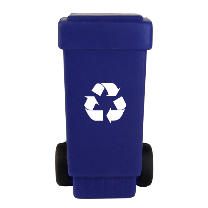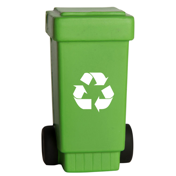 - Put focus on the environment at your next tradeshow or promotional event with this recycle bin shaped stress reliever.