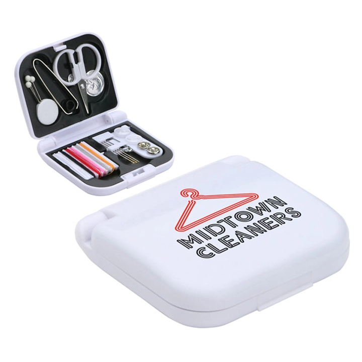 - Each kit includes mini scissors, colored thread skeins, needles, pins, tweezers, and more—making them ideal for travel programs, hospitality, emergency kits, and practical promotional giveaways.