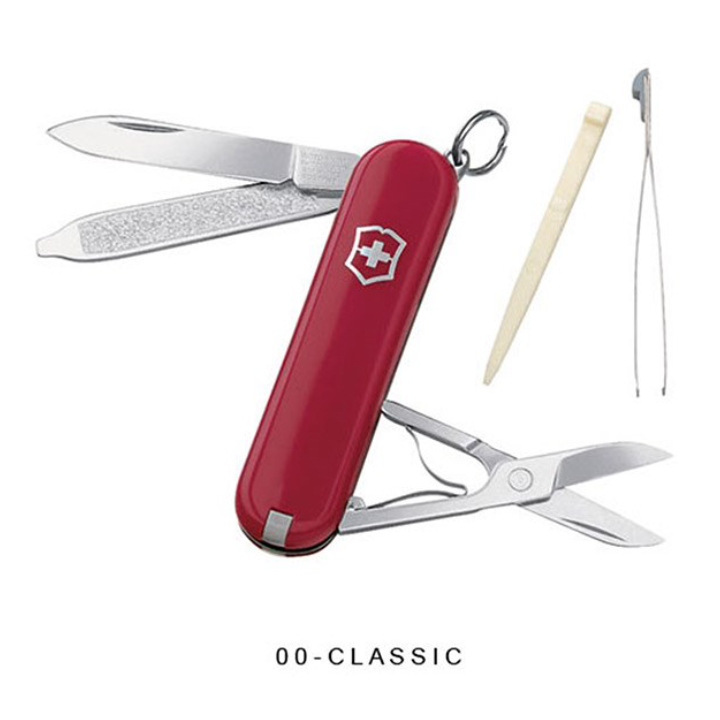 - Features: Scissors, Nail file w/screwdriver tip, tweezers & toothpick.