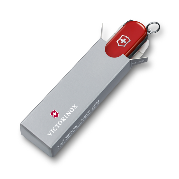 Features include: Blade, nail file with screwdriver, tweezers, toothpick and key ring.